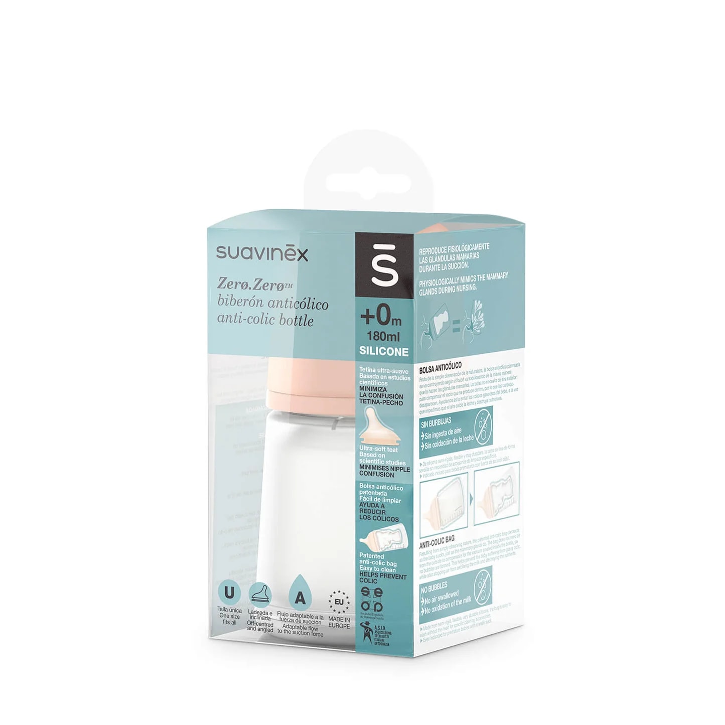 Incluye: mamadera ZERØ.ZERØ™ de 180ml con Tetina Fisiologica SX Pro de Silicona